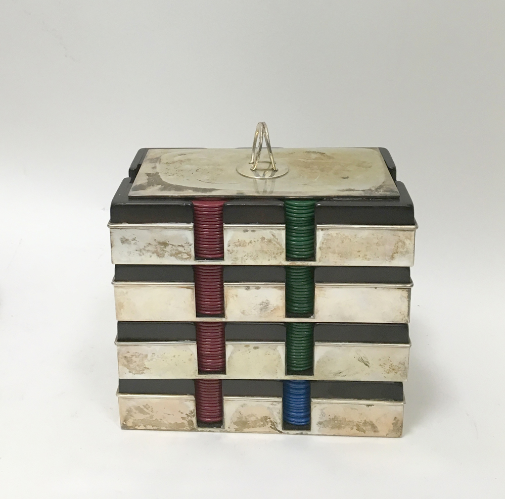Porta fiches in legno e argento con presa a ferro di cavallo. Titolo 800