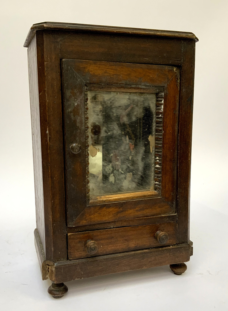 Modellino di armadio del sec. XIX con cassetto ed anta a specchio (cm 22x33x13) (difetti e mancanze)