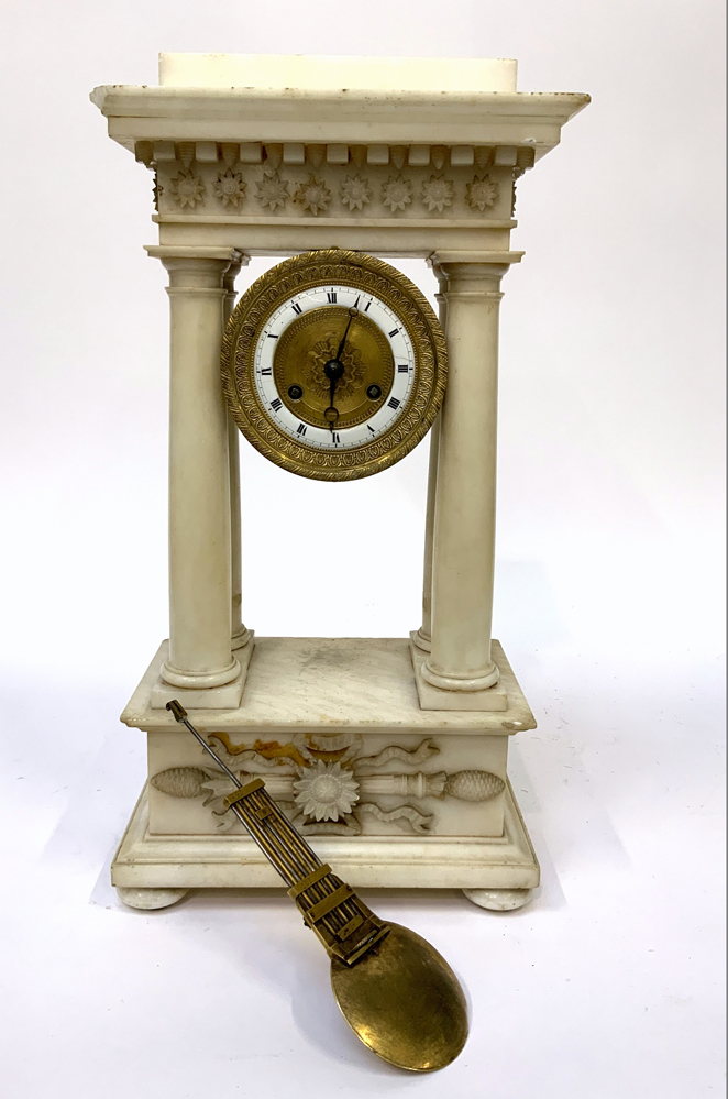 Lotto 2638 | ANONIMO FRANCIA Pendola a portico con struttura in alabastro, con quadrante a f