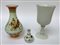 Lotto composto da tre vasetti in vetro lattimo con decori e misure diverse (h max cm 26) (difetti)