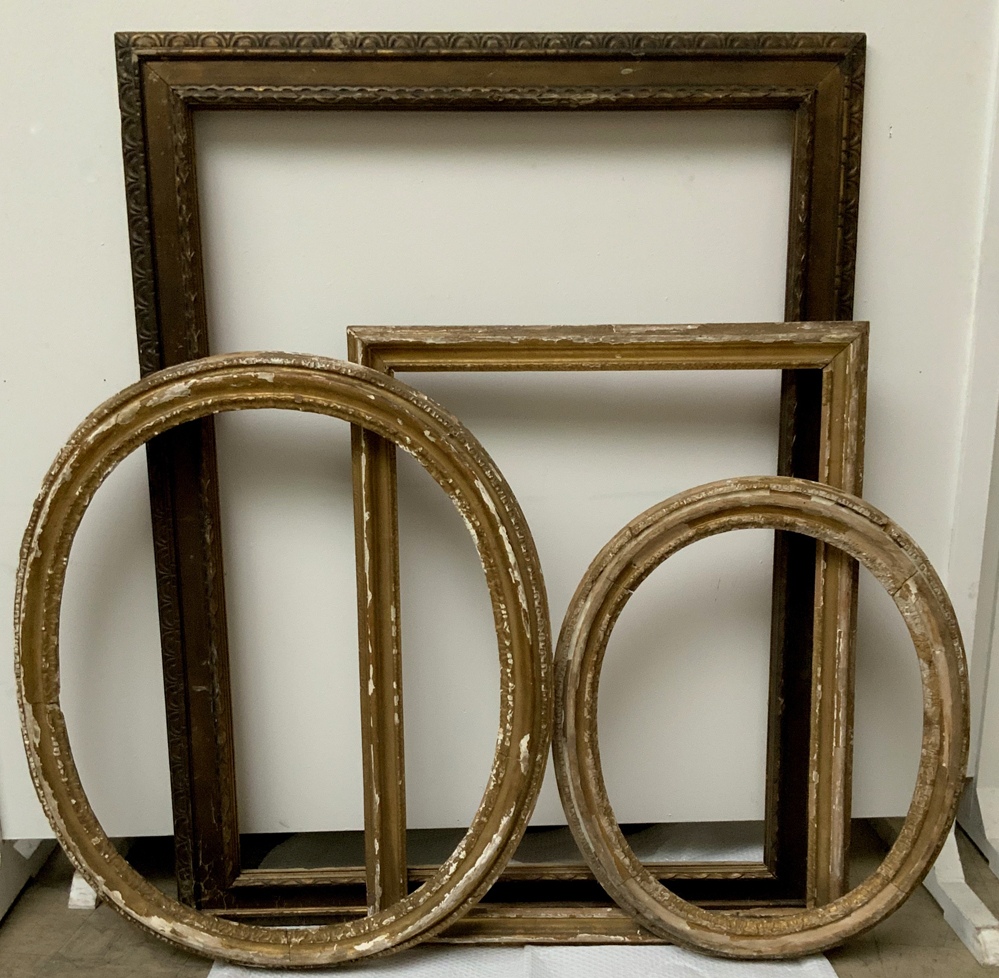 Lotto composto da quattro cornici di forma, misure ed epoche diverse, (difetti)