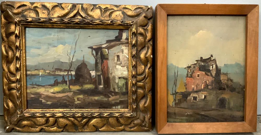 Ignoto "Paesaggi" due piccoli dipinti ad olio (misure diverse). In cornice