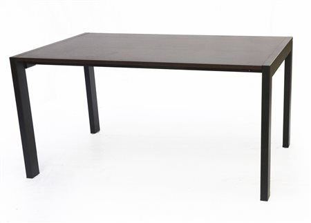 Tavolo allungabile in legno impiallaggiato con gambe in metallo verniciato nero. Italia, anni '90/2000. (chiuso cm 150x75x90) (lievi difetti)