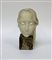 Scultura in alabastro raffigurante una maschera femminile montata su un piccolo