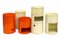 Lotto composto da tre mobili contenitore. Produzione Kartell, Milano, anni '70. ABS bianco e arancione. (d cm 42) (gravi difetti e mancanze)