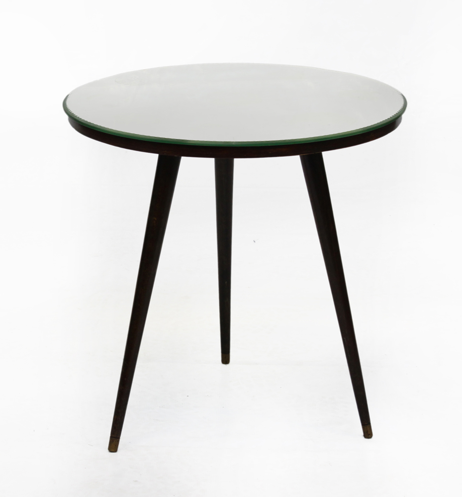 Tavolino da salotto con struttura in legno ebanizzato e piano in cristallo mola