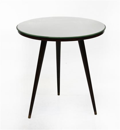 Tavolino da salotto con struttura in legno ebanizzato e piano in cristallo molato. Italia, anni '30. (h cm 50; d cm 51) (lievi difetti)