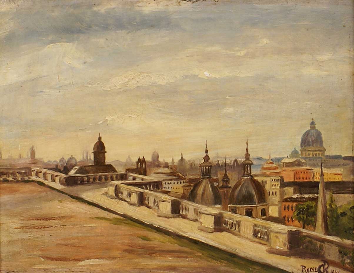 FIRMA INDECIFRABILE XX Sec. "Veduta di Roma dal Pincio", olio su tavola,...