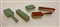 Lotto composto da due spazzole in smalto verde, due in smalto rosso e una scato