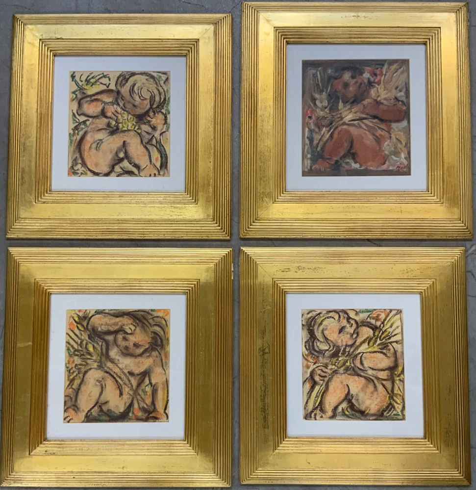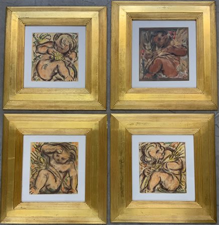 Augusto Magli "Putti" Lotto di quattro pastelli ad olio su carta. Firmati in bas
