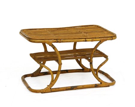 Tito Agnoli Tavolino in giunco e malacca. Italia, anni '50. (cm 81x47,5x53,5) (d