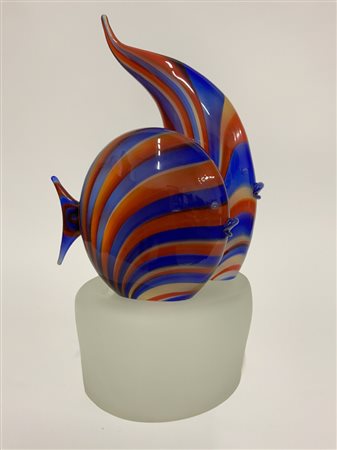 Manifattura di Murano "Pesci" Scultura in vetro sommerso blu, rosso e incolore