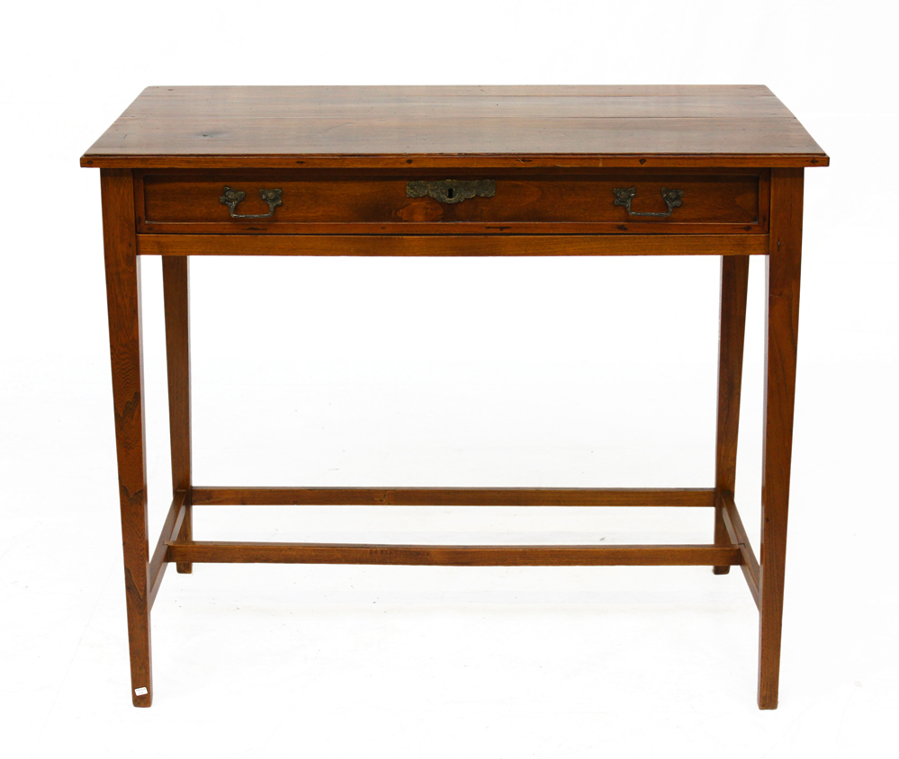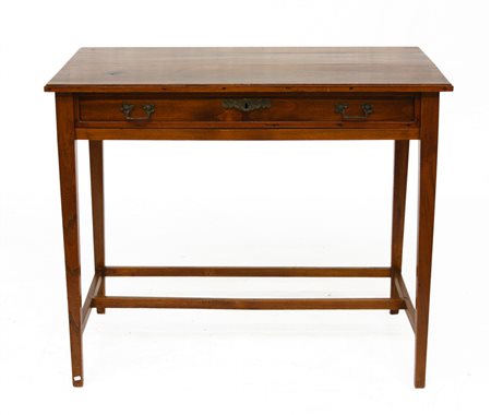 Scrittoio Liberty in rovere massello con cassetti nella fascia e maniglie in ottone, gambe rastremate. Italia, inizio secolo XX. (cm 98x80x57) (lievi difetti)