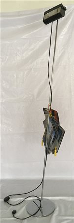 Lampada da terra con paralume in metallo laccato nero e struttura cromata. Italia, anni '90. (h cm 198) (difetti)