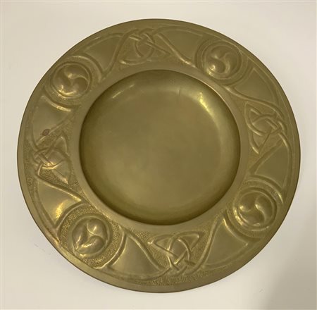 Tondo da parata in ottone sbalzato a disegno Art Nouveau stilizzato. 1900ca. (d cm 48,5) (lievi difetti)