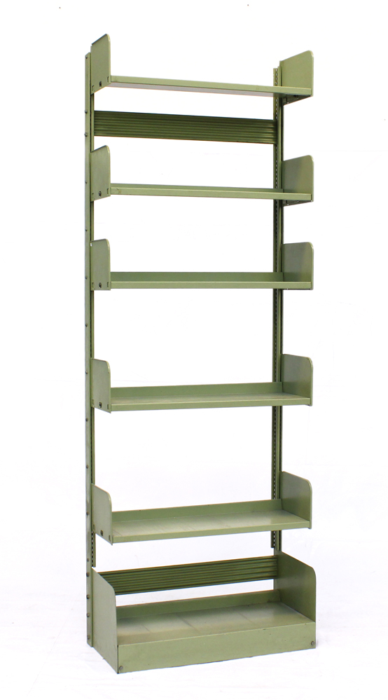 Libreria a sei ripiani in metallo laccato verde. Italia, anni '60/'70. (cm 78x222x38) (difetti)