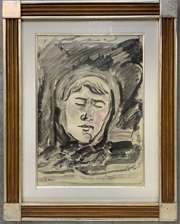 Augusto Magli "Volto" Tempera su carta. Firmato "A. Magli" in basso a sinistra (