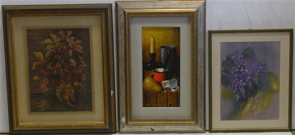 Lotto composto da tre dipinti di autori e soggetti diversi (difetti)