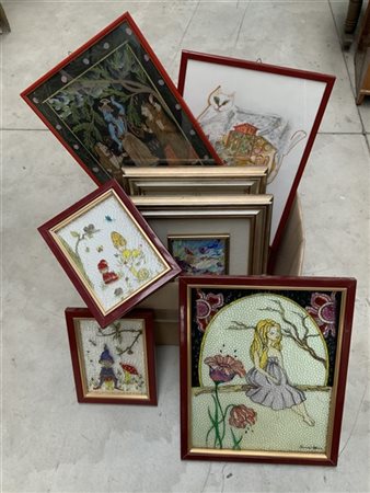 Cartone contenente numerosi quadri di soggetti e autori differenti (difetti)