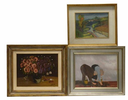 Lotto 3074 | Lotto composto da tre dipinti di autori diversi. In cornici (difetti)