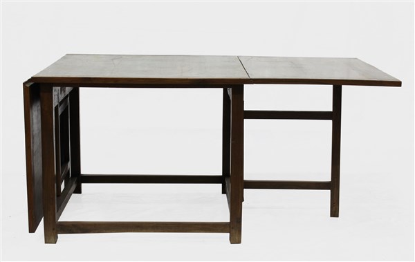 Grande tavolo ad alette in noce con gambe e traverse dritte cm 120x81x100 chius