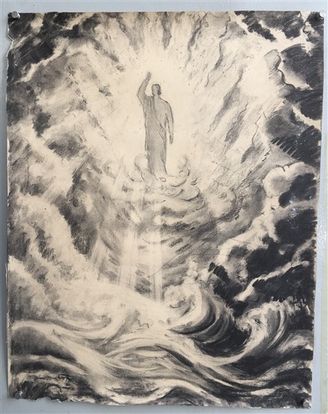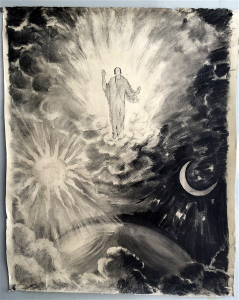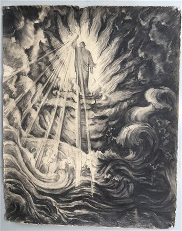 Ignoto, lotto composto da due bozzetti a carboncino raffiguranti ritratti e quattro bozzetti a carboncino con allegorie della creazione di luce, acqua, luna e sole. Misure differentI (difetti)