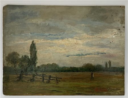 Ignoto "Verso il Tramonto" olio su tavoletta (cm 29,5x40), firmato E. Federico in basso a destra (difetti)