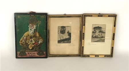 Lotto composto da due incisioni di Carlo Casanova ed un dipinto raffigurante S. Nicola (difetti)