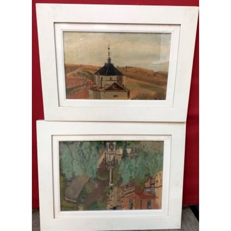 Firma indecifrata, ''Monumenti spagnoli'', due dipinti ad olio su cartone telat