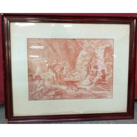 Ignoto, "Scena mitologica" incisione (cm 39x50), in cornice (difetti)