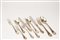 SERVIZIO DI 73 POSATE IN ALPACCA manifattura italiana Composto da 16 forchette, 8 coltelli, 8 cucchiai, 8 cucchiai medi, 8 forchette pesce, 8 coltelli pesce, 8 forchette frutta, 7 coltelli frutta e 2 posate da legumi