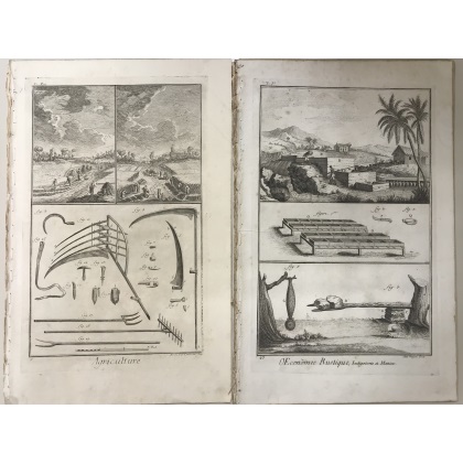 Diderot D'Alambert. Agricoltura. 8 tavv. in folio. Acquaforte su rame (difetti)