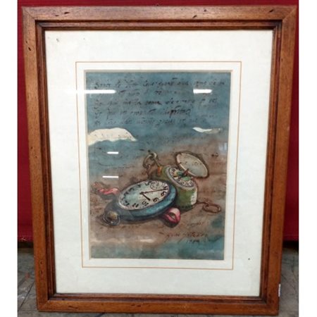 "Gemelli del tempo" tecnica mista su carta (cm 27x20), firmato e datato 1989 in basso a destra, in cornice