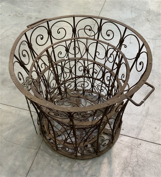 Lotto composto da tre antichi cesti in ferro battutto, di misure diverse (difetti)