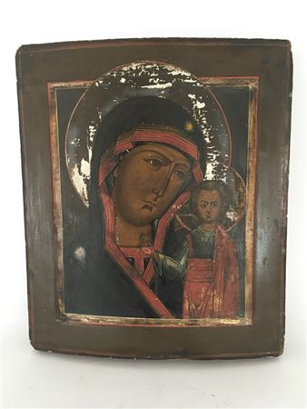 Icona raffigurante "Madonna con bambino" olio su tavola (cm 36x30) Russia, secolo XIX (gravi difetti)