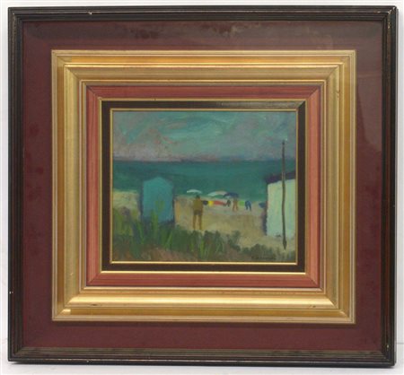 Gian Rodolfo D'accardi "Spiaggia" olio su faesite (cm 24x29,5) firmato in basso