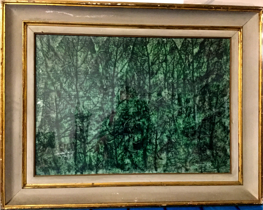 Giandante X "La foresta" 1956 cera e china su carta applicata su faesite cm 50x7