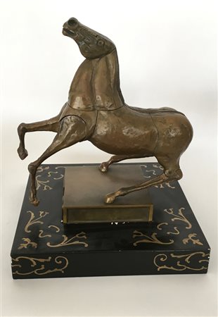Scultura- multiplo in bronzo, esemplare n. 768/2000, firme incise alla base, su basamento in legno dipinto