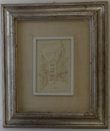 Orfeo Tamburi "Veduta londinese" pennarelli su carta cm 22x15 firmato in basso