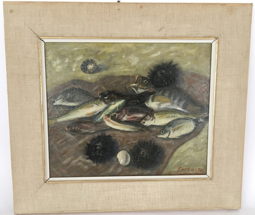 Francesco Speranza "Pesce di scoglio" 1958 olio su tavola cm 25,5x30 firmato e d