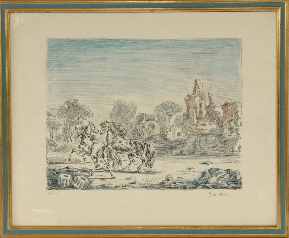 Giorgio de Chirico "Senza titolo" litografia a colori cm 48x60 numerata 61/125