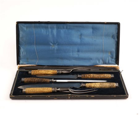 SET POSATE PER ARROSTO IN SHEFFIELD Inghilterra fine del XIX Sec. Con manici in osso, entro custodia