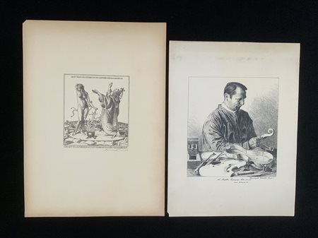 Lotto composto da due litografie: "Il liutaio Carlo Bisiach" e "Oromazes e Minerva"