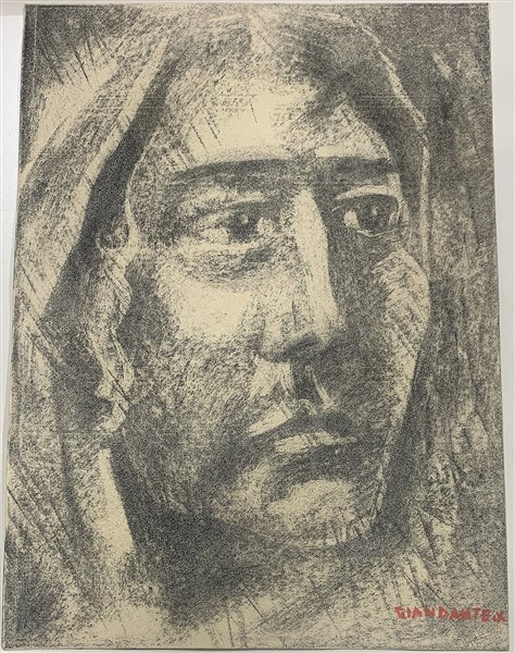 Giandante X Lotto composto da due pastelli su carta raffiguranti volti cm 48x35