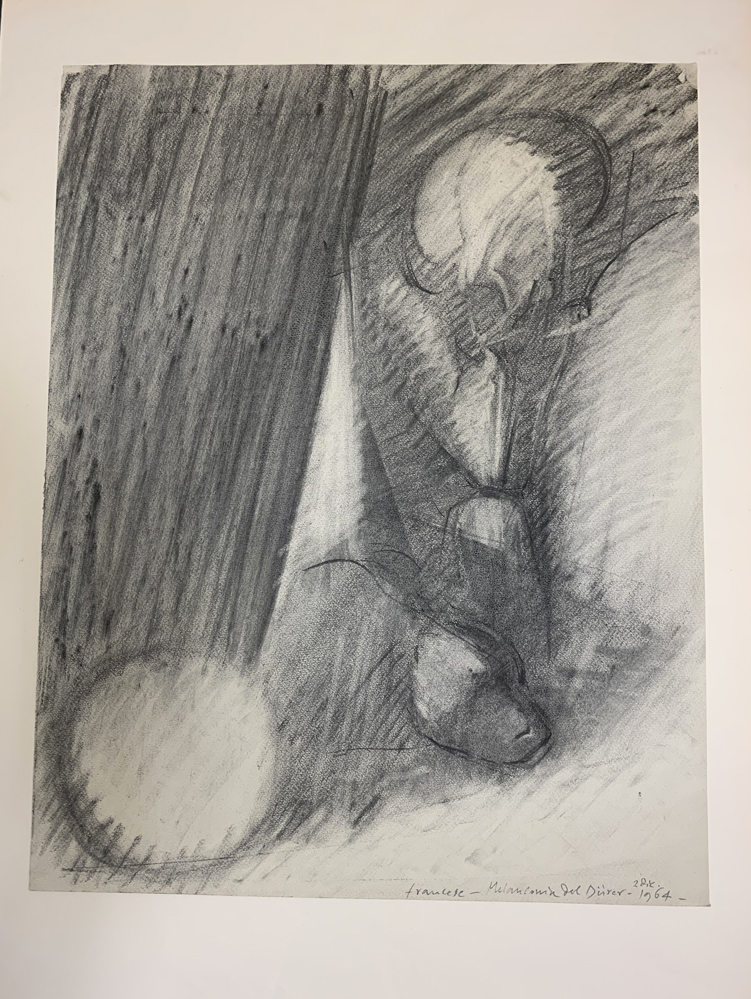 Franco Francese "Melanconia del Durer" 1964 carboncino su cartoncino cm 53x41,5
