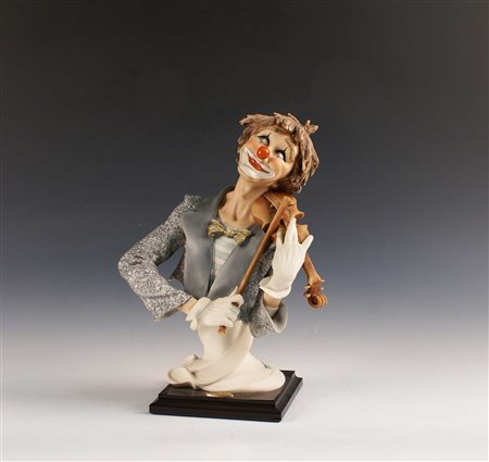 GRUPPO IN CERAMICA Capodimonte Raffigurante un busto di clown con violino H....
