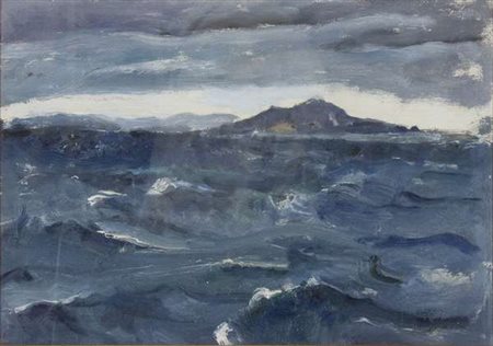 Neno Mori Isola greca, 1933 olio su tavola, cm. 22x30 Firma in basso a dx Sul...