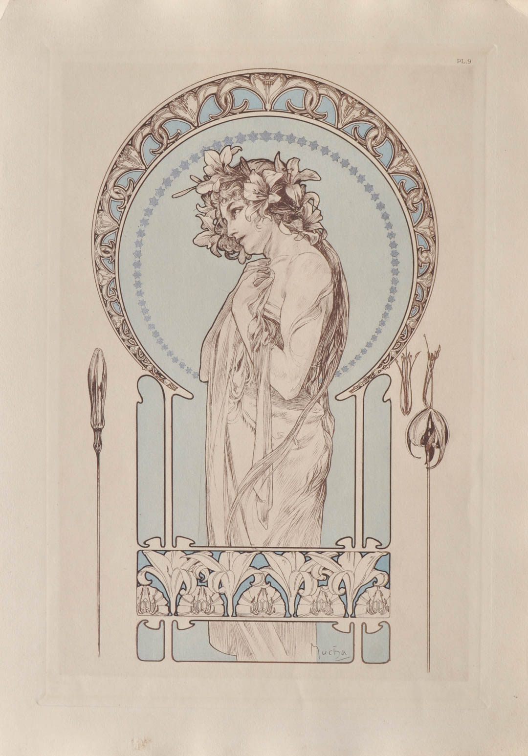 Alphons Mucha Ragazza ornata di gigli, 1902;Tratto da: Documents Décoratifs