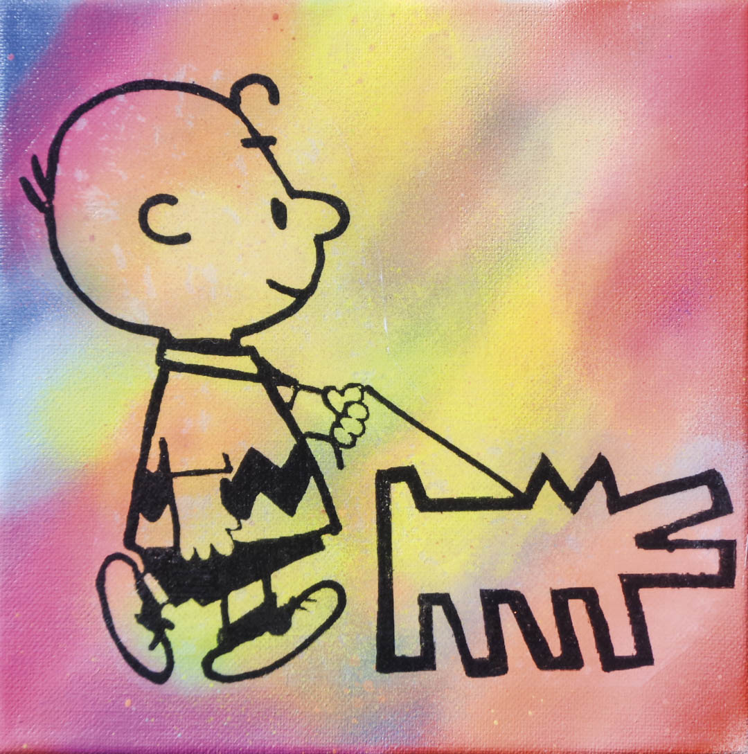 PyB (Frankreich/Francia) Charlie Brown & dog haring;Tecnica mista su tela, 20 x 20 cm