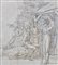 Jakob Placidus Altmutter (Innsbruck 1780 – bei/presso Schwaz 1819). Soldati francesi in riposo in Tirolo, 1810 ca.;Penna acquerellata, 19,5 x 18 cm (entro il passepartout), leggera